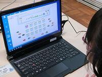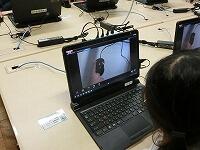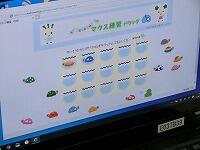 「ドラッグ」の練習は,画面のあちらこちらに散らばったカメを水槽に入れてあげるゲームです。グラフィックもきれいで,楽しいゲームがあるのだなあと感心していましたが,すべてITアドバイザーさんの手作りだそうです。