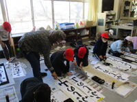 4年生の課題は「ふじの山」です。習字の栗林先生をお迎えして書き初め練習を行いました。