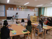 ATLのジャッキー先生,外国語の薄井先生による外国語特別授業を行っています。動物の名前を覚えて,英語で「進化じゃんけん」をしました。英語を知っている子も,知らない子も,大きな声で発音しながら外国語に親しみました。