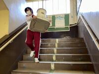 倉庫に置いてある荷物をリレー方式で1階まで素早く運ぶ