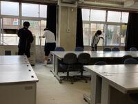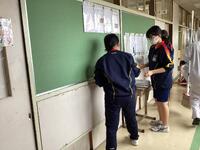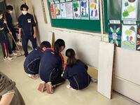 時間にはクラスで協力して作ってきた学級掲示などをはがす場面が。