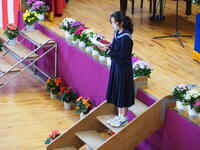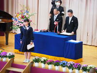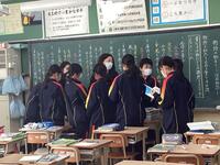 を渡していました。生徒だけでなく、人事異動となる教員も本日
