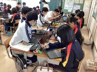1年生は新聞づくり。2年生は職業の適性診断を実施して