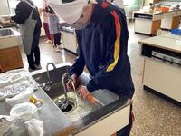 1年生の理科担当の教員が、生徒の手から教科書を引っ張って