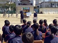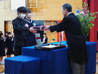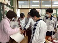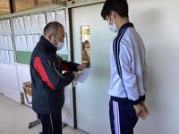 を渡していました。生徒だけでなく、人事異動となる教員も本日