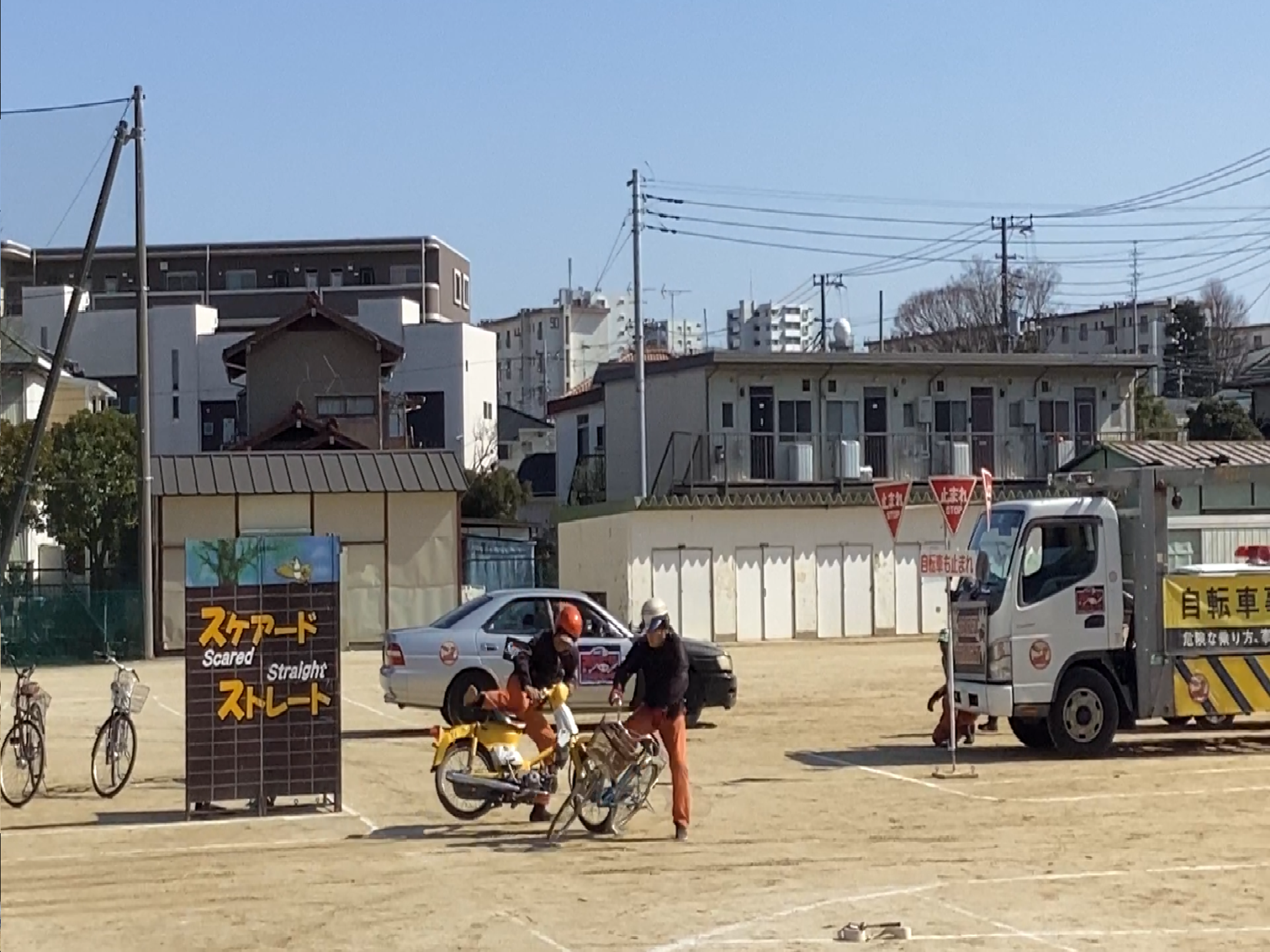 同時に、車の影に隠れていた保護者の方々が一斉にレンズを顧問に向けて