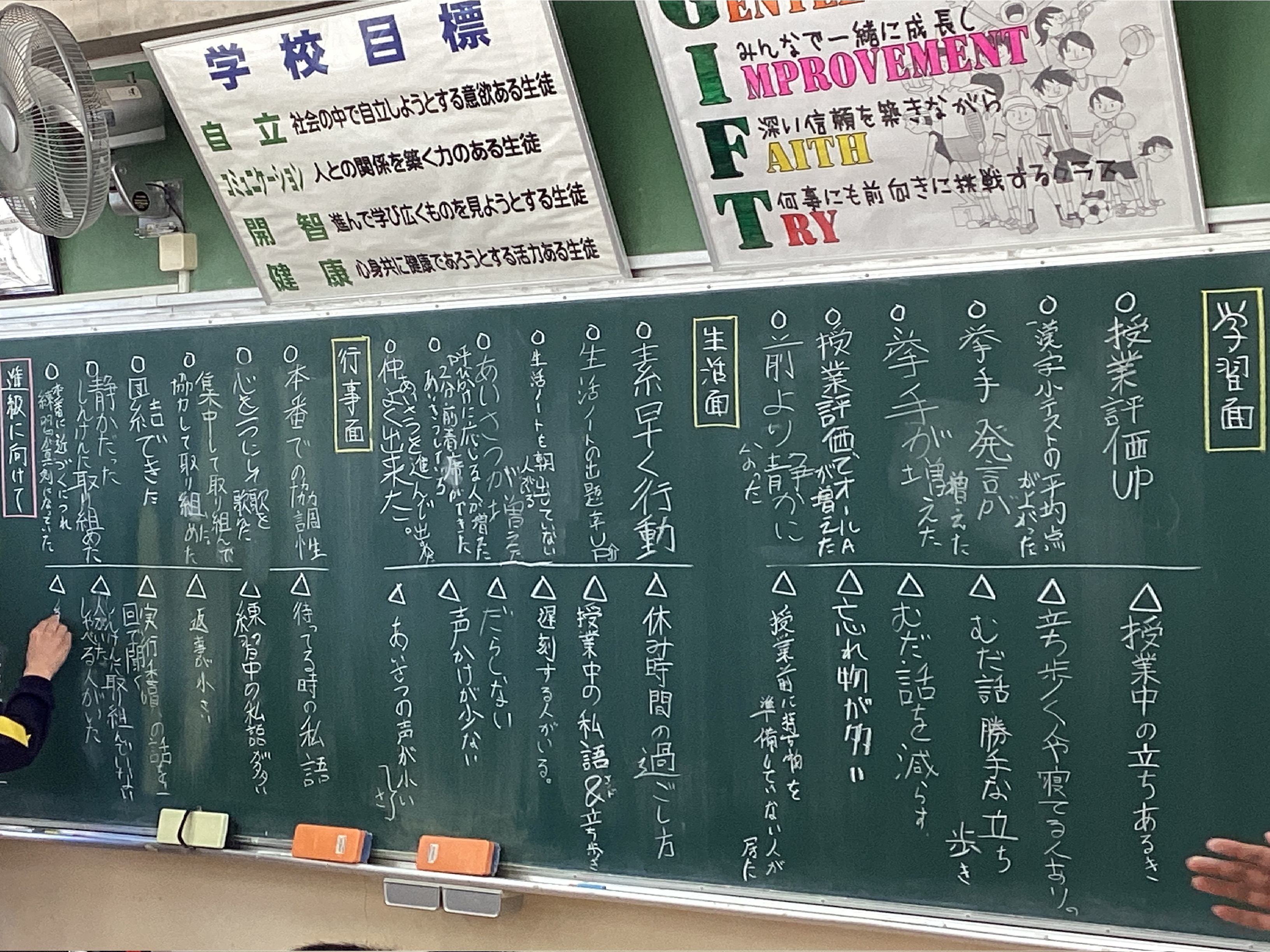 勿論ですが、生徒達の口から1年間の反省や成長、来年度の目標と