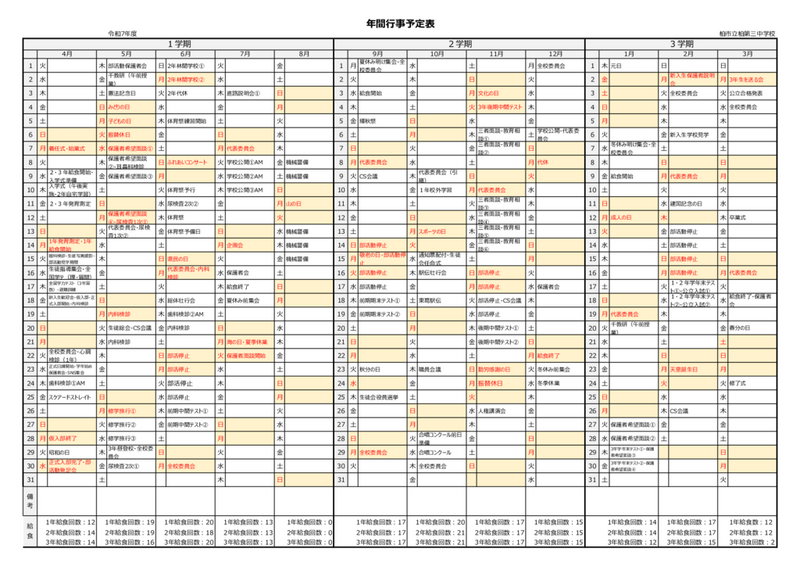 年間行事予定 全ての記事 全ての記事 アーカイブ 2025年11月 (0) 2025年10月 (0) 2025年9月 (0) 2025年8月 (0) 2025年7月 (0) 2025年6月 (0) 2025年5月 (0) 2025年4月 (0) 2025年3月 (0) 2025年2月 (0) 2025年1月 (0) 2024年12月 (0) 2024年11月 (0) 2024年10月 (0) 2024年9月 (0) 2024年8月 (0) 2024年7月 (0) 2024年6月 (0) 2024年5月 (0) 2024年4月 (1) 20件 1件 5件 10件 20件 50件 100件 令和7年度 年間行事予定(令和7年8月変更) 投稿日時 : 2024/04/09 柏第三中学校管理者 ※行事予定は変更されることもあります。 070818 年間行事予定(公開用).pdf
