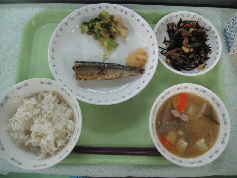 今日の献立は和食です。主菜は、秋刀魚のピリ辛焼きです。秋刀魚は今が旬な魚です。今日はふっくら焼き上げて、トウバンジャンの入った少しピリ辛なねぎソースをかけてつくりました。秋刀魚は青魚で、鯖のときにも言っていますが秋刀魚にも DHAが含まれており、脳を活性化する働きがあるとされています。また、ビタミン類も豊富で、特にビタミンB12が多く、貧血予防にも効果があるといわれています。