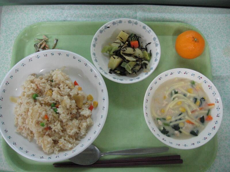 今日の献立はガッツリした中華です。5、6時間目に三送会があるということで、それぞれの学年で練習の成果がだせるように、ガッツリした腹持ちの良いメニューにしました。主食は五目炒飯です。五目、というと5種類の具材が入っているようなイメージかと思いますが、五目には、決まった食材は無く、 複数の素材や食材が入っていることを指すそうです。ちなみに、今日の具材はねぎ、焼き豚、にんじん、しいたけ、グリンピースと5種類入っています。味付けはしょうゆと塩コショウ、ごま油とシンプルになっていて、焼き豚含め、具材のおいしさを味わえるかと思います。しっかり食べて、午後の三送会も頑張りましょう!