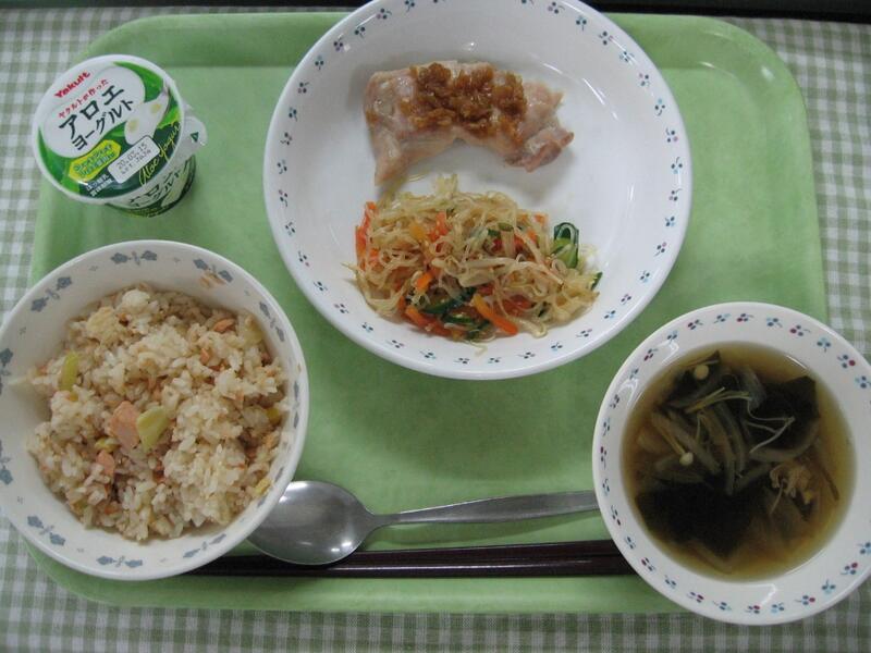 2班さんの献立は、中華できちんと統一されていて、鮭、鶏肉があり、体をつくるたんぱく質たっぷりなので、成長期のみなさんに合った献立だと思いました。