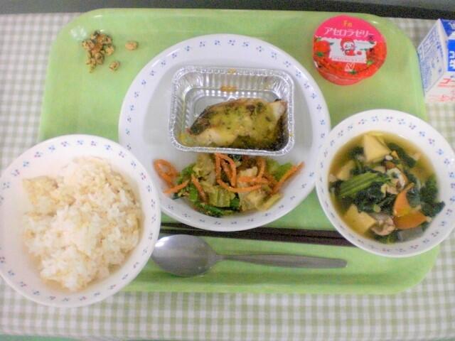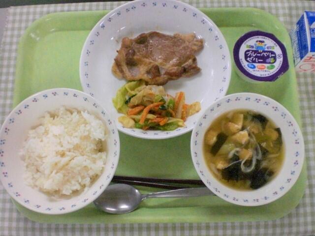 さて、明日は10月10日、目の愛護デーです。それにちなんで、今日、目の筋肉や粘膜に効くビタミンBがたっぷりの豚肉をはじめ、夜間の視力アップや眼精疲労の回復の効果があるブルーベリーゼリーなど目によい食材をふんだんに使っています。ちなみに、この日になった由来は、10月10日の10を、右回転させると、眉毛と目のように見えることからだそうです。目は、一度悪くなると、なかなか思うようによくならないため、悪くならないように気をつけていくことが大切なんだそうです。給食を通して、目について少しでも意識してもらえたらうれしいです。