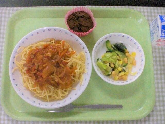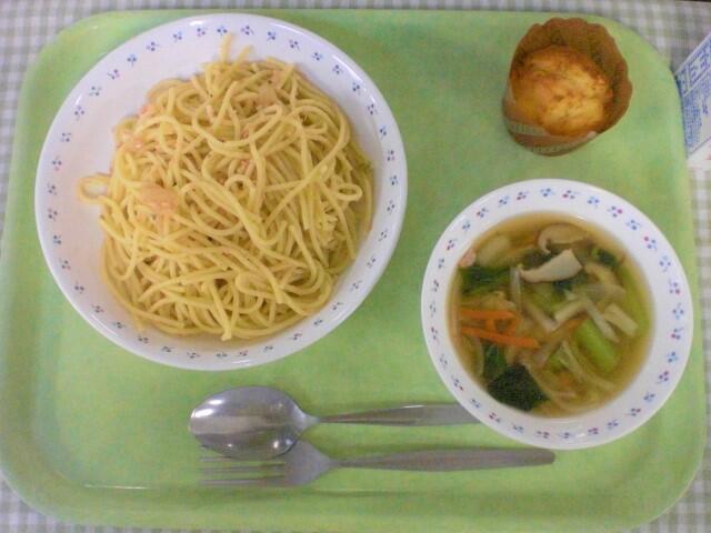 今日の献立は、洋食です。主食は、新メニューのキャベツとサーモンのペペロンチーノです。ペペロンチーノはイタリア発祥のパスタで、正式名称をペペロンチーノ・アーリオ・オーリオと言います。ペペロンチーノは唐辛子、アーリオはにんにく、オーリオは油を意味しその名前の通り唐辛子とにんにく・油を使った具材の少ないシンプルなパスタです。