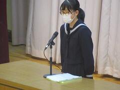 各学年の代表生徒から「2学期の反省と3学期の抱負」の発表もありました。各学年のよかった点、改善点を振り返りながら3学期への決意をそれぞれ発表していました!