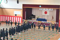 一様に緊張した面持ちの新入生でしたが、3年生たちが温かく迎え入れてくれました。歓迎の歌『あなたに会えて・・・』は、この日この場所で出会えた「奇跡」を共に感じ、互いに支え合いながら、一歩一歩進んでいく若者を賛美し、応援する歌です。新入生の皆さんには「希望」と「勇気」を大切に、中学校での3年間を充実したものにしてほしいと願います。
