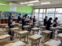 三年生は数学の時間、確認テストに取り組んでいました。