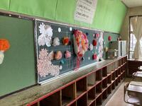 こちらのクラスでは、クラス目標の掲示の作成を自分たちで行っていました。ひとりひとりが手形を押し、カラフルな仕上がりに。