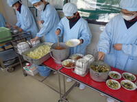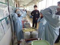 今日の給食はドライカレー。新入生にとっては中学校で初めての給食配膳です。小学校までの6年間で身につけた配膳の「こつ」。ところ変われば勝手も変わるようで、新入生たちは少々苦戦しているようでした。その様子があまりに初々しく、サポートに来ていた三年生の給食委員たちが逞しく見えました。