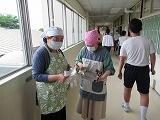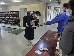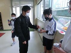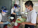 コロナウィルス感染予防のため,給食の配膳時,職員はもちろんですが,生徒たちも注意を払っています。