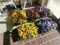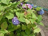 写真は左からアジサイ,パンジー,ムラサキゴテンです。