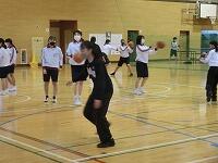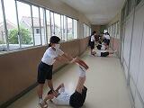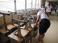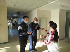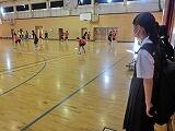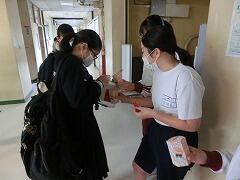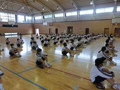 例えば体育館部活は,男子バスケ,女子バスケ,卓球が時間を分けて行うようにしています。十分に距離を取って活動することができています。
