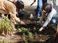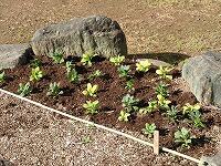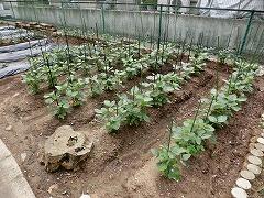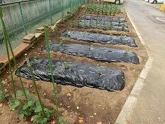 菜の花学級が「作業」の授業で植えたものです。ジャガイモはすでに収穫済みで,今はサツマイモや枝豆がすくすくと育っています。