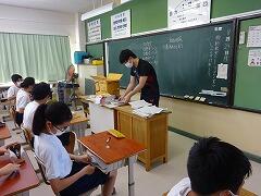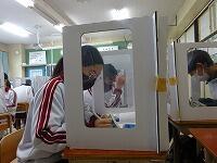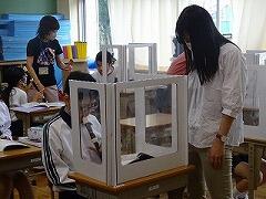 マスクではなく,マウスシールドを着用して授業をする先生の姿も。
