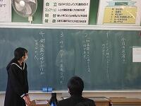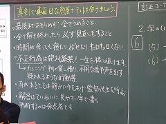 1年生にとっては初めての定期テストです。テストの心構えが黒板にも書かれています。小学校との違いに戸惑いがあったかもしれませんが,実力を発揮できたでしょうか?