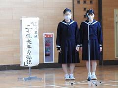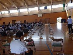 今回も放送で行われ、校長先生と生徒指導主任の山﨑先生のお話のあと、