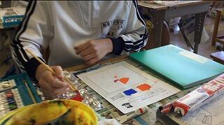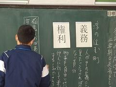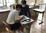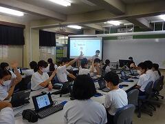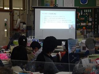 今年度三中に来られた金子先生は実物投影機や動画を使った授業をしていました。