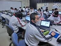 その音をたどってみると、こちらもまた今年度三中に来られた西前先生がICTを使い授業をしていました!