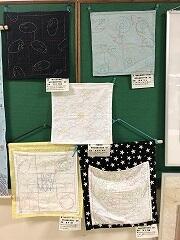 現在職員室前の廊下には,3年生の美術の作品が掲示されています。自分の好きな楽曲の歌詞と,それに合うイラストが描かれています。ほんの一部しか紹介できていませんが,どれも素晴らしい作品です。