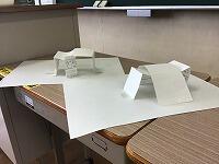 よく揺れる形をした紙の模型に工夫をして、揺れにくい模型にする方法を自分なりに考えて工作し、「免震」や「制震」の仕組みについて学びました!