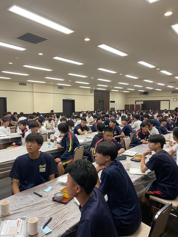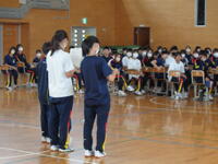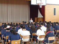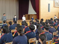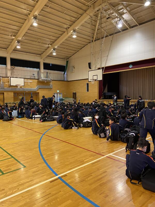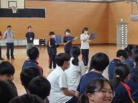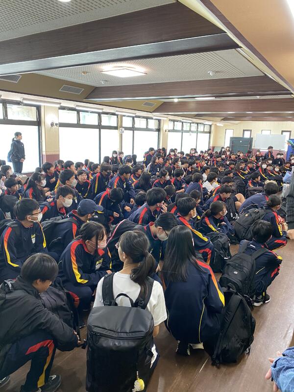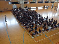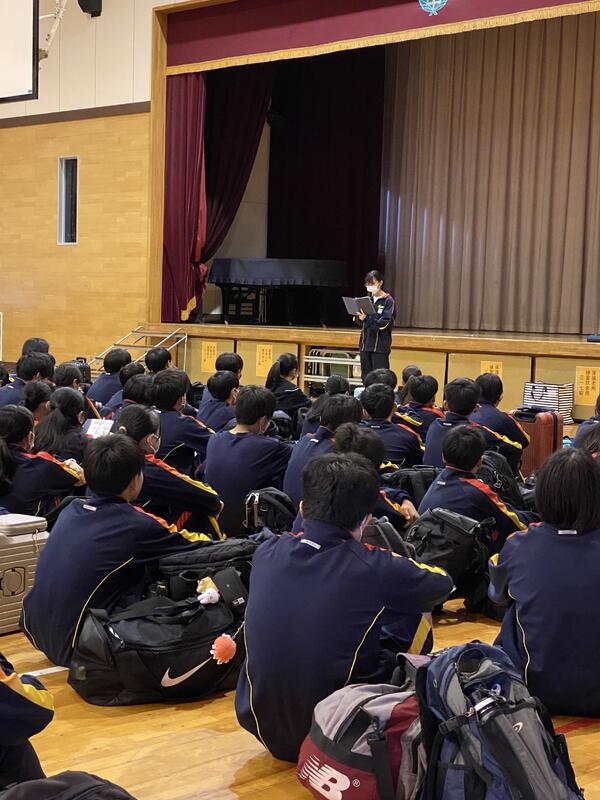 3年生が修学旅行から戻り、登校してきた今日の午後、2年生は林間学校出発を日曜日に控え、最後の事前集会が行われました。はじめに、2学年以外に引率する職員の紹介があり、その後、学年主任の先生から最後の重要事項確認と、行事を成功させるためのキーワード「みんなで」ということについてお話がありました。
