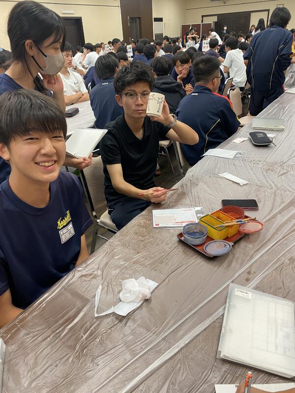清水焼の絵付け体験を行いました。美術の時間に事前にデザインをしておいたので、生徒たちはあっという間に仕上げてしまいました。どんな作品がやきあがるのでしょうか?