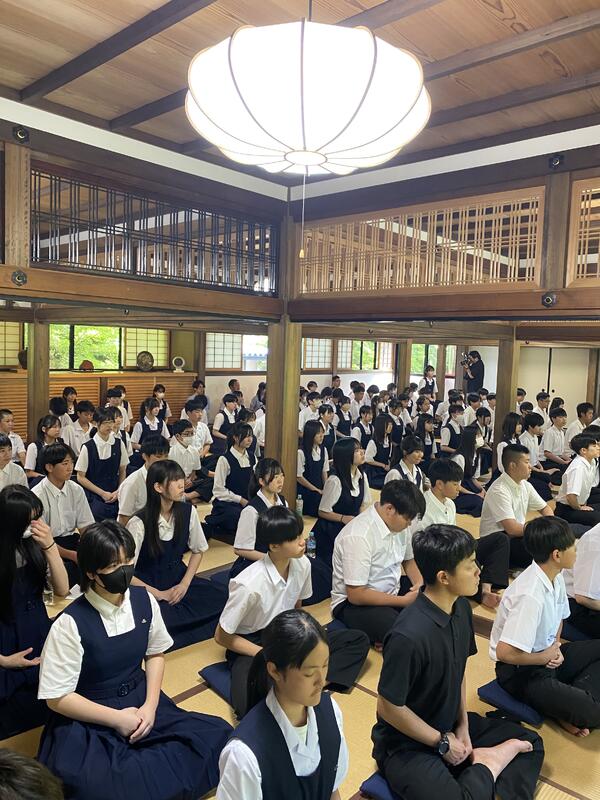修学旅行3日目の朝を迎えました。晴天です。天気予報では昨日雨の予報もありましたが、見事に全行程晴れでの実施となりそうです。今日は妙心寺で坐禅体験をしたのち、学級別の活動となります。朝ごはんをしっかり食べて出発です。
