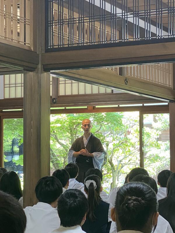 妙心寺にて、坐禅体験。頭と心を空にする。雑念に囚われては幸せにはなれません。心と頭を空にするために坐禅をくみます。でも、空にしようと思えば思うほど、雑念が浮かんできます。そんな時は、耳を澄ませて音を聞く。そうすると雑念は消えていきます。それでも集中できない時は、警策をしていただきます。最後にご住職から、無いことの有難さというお話をいただきました。ありがとうございました。