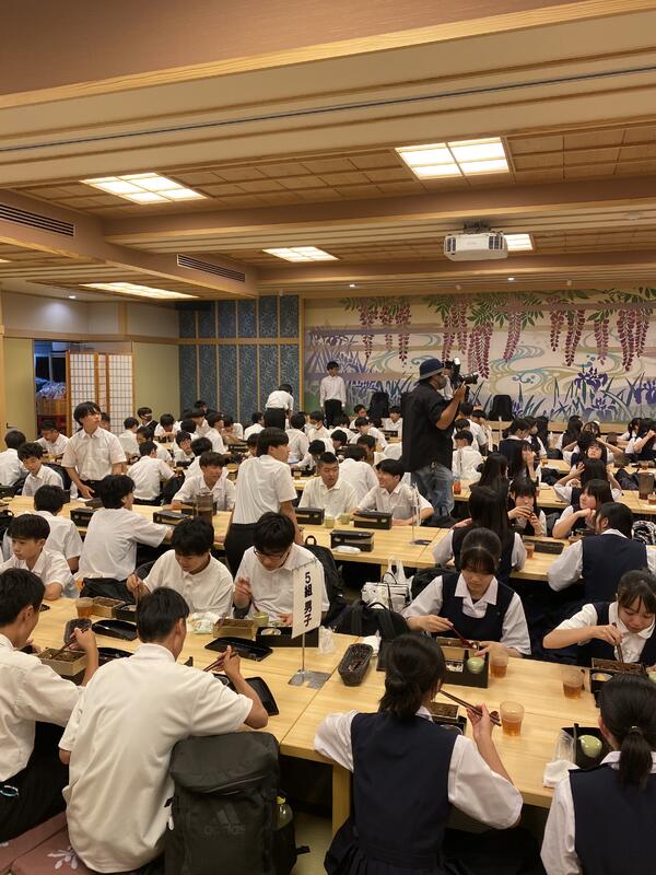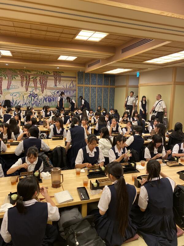 最後の昼食は京都駅近くの旅館GINKAKUでいただきました。この旅館は昨年度の3年生が宿泊した宿です。このあと、15時6分の新幹線で帰路に着きます。たくさん思い出ができたと思います。家に帰ったら、家族にたくさん話してください。3日間ホームページをご覧くださり、ありがとうございました。