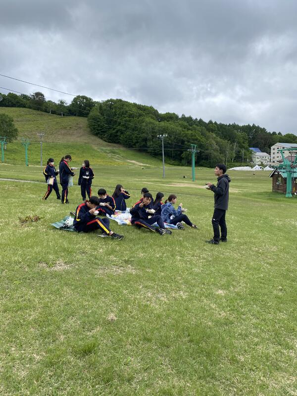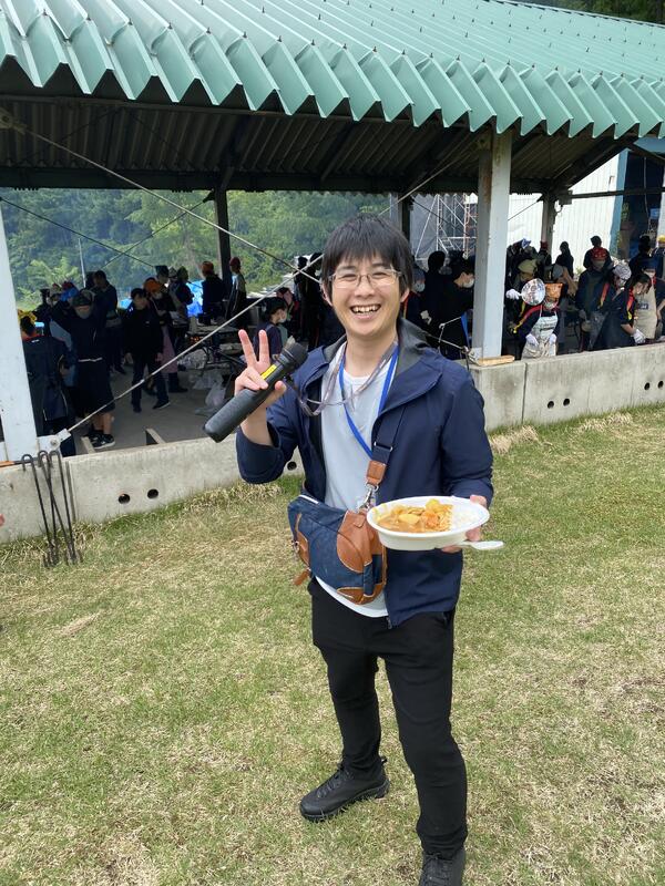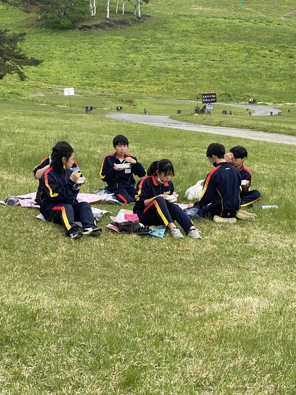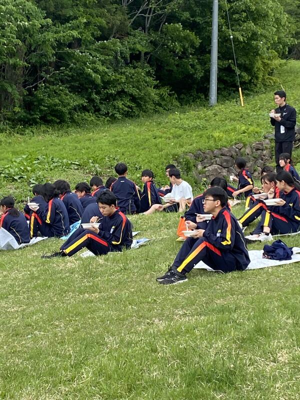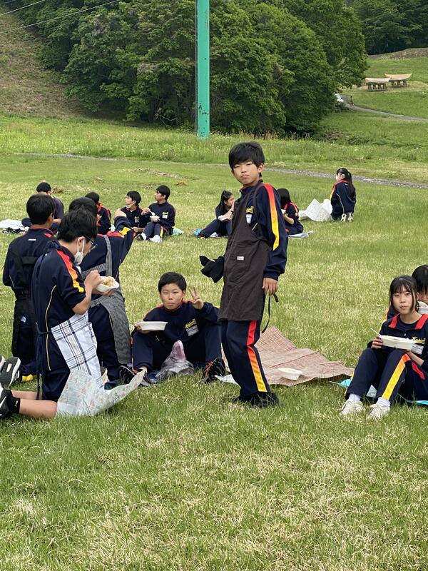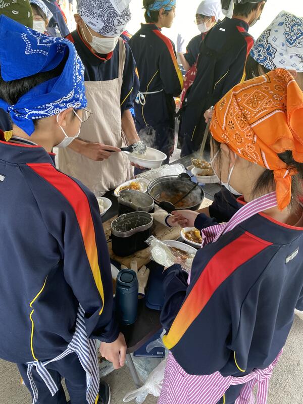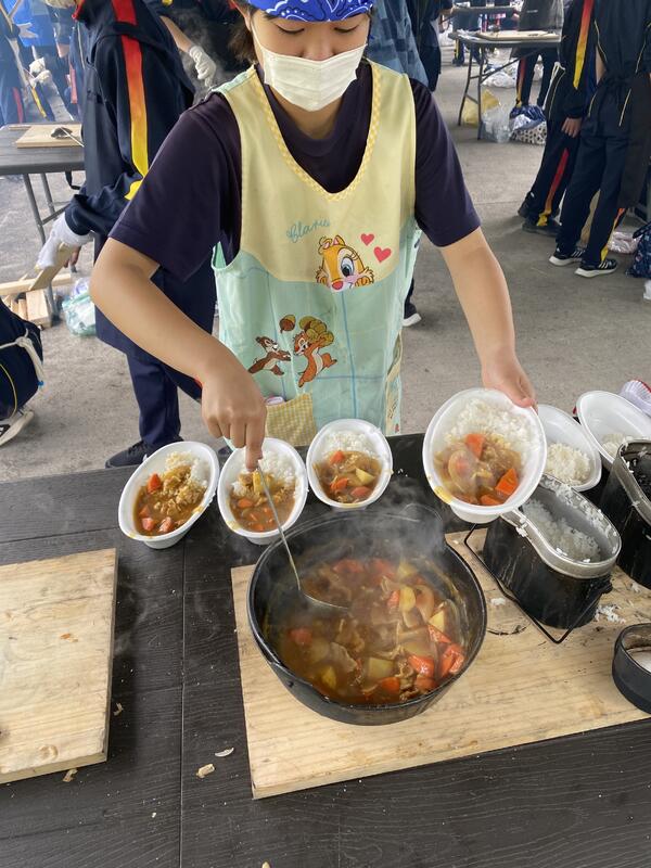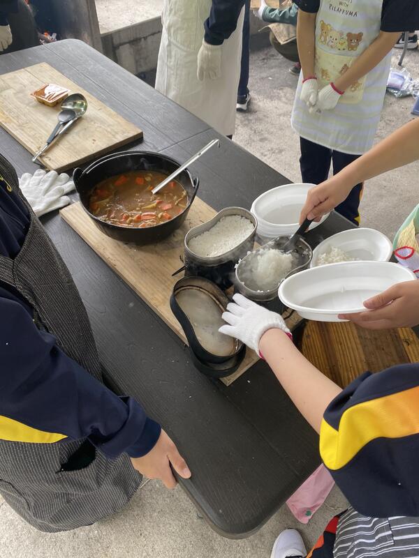 カレーライスが美味しくできました。おこげも香ばしくて美味しいです。天気が回復したので、芝生の広場でいただきました。美味しかったです。