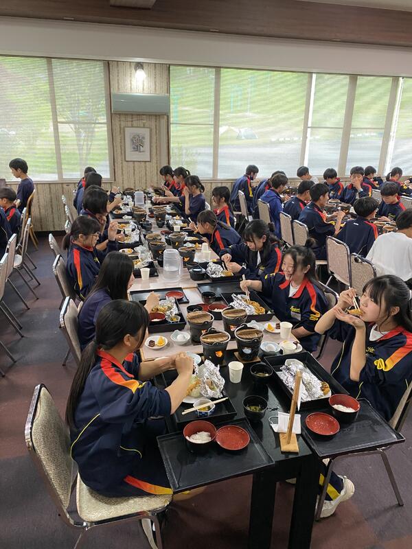ウォークラリーを終えて、宿舎に入室したあとは、レストランに集合して夕ご飯です。こちらホテルサンバードさんはお米をの生産も行っているということで、とても美味しいご飯をいただきました。五杯、六杯おかわりする男子も多く、嬉しくなりました。食事の後は、いよいよキャンプファイヤーです。