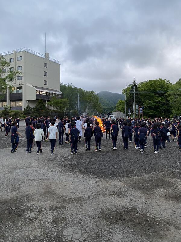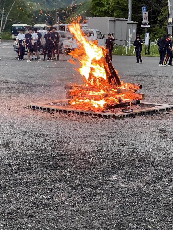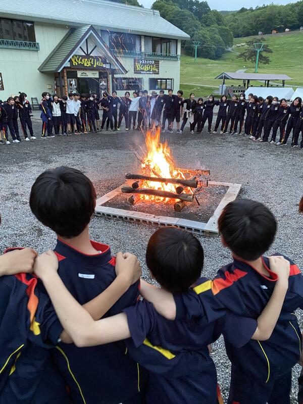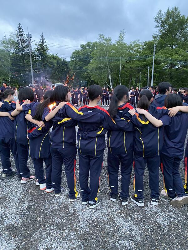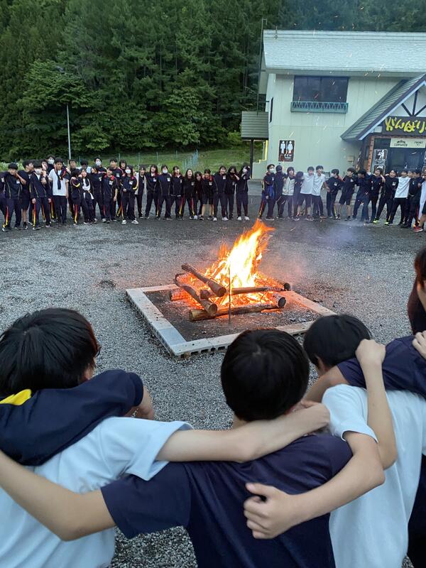 キャンプファイヤーは本当に盛り上がりました。儀式の炎では、各学級が誓いの言葉を語り、炎を受け取りました。正義、健康、勇気、愛情、友情と、それぞれの学級を表すキーワードが選ばれたようです。その後は「マイムマイム」と「ジンギスカン」を汗だくで踊り、最後は、「かりゆし」の「オワリはじまり」を全員で肩を組んで熱唱しました。青春の1ページを見ているようでした。