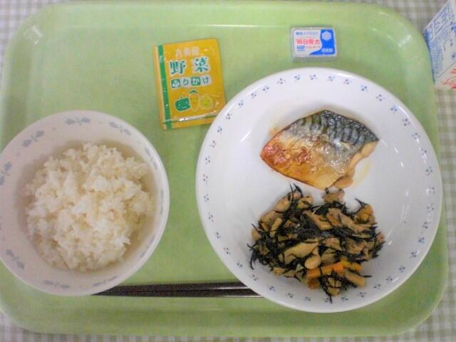 今日の献立は和食です。主菜は鯖の照焼きです。脂ののった鯖を下味をつけてふっくらと焼き上げ、さらにあまじょっぱいタレをかけて仕上げました。鯖には記憶力アップのDHAや血液サラサラなどの効果があるEPAなどたくさんの栄養素が含まれています。ぜひしっかり食べてもらえたらと思います。