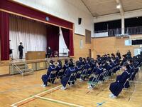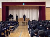 卒業式当日は1年生が自宅学習日となるため、今日が3学年全員で体育館に集まる最後の日です。全校で歌う、校歌や全校合唱は、卒業生への想いや学校への思いが込められた温かい歌声となり、学校全体で卒業を祝う気持ちが1つになる時間となりました。当日は2・3年生で行われますが、今日の歌声がきっと卒業生の心に残り、式本番や卒業後の未来に胸を張って過ごせるような力になることと思います。