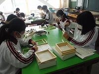 2年生の技術の授業では、木材を使ってあんどん(小型の照明具)を製作しています。