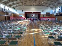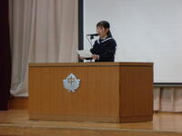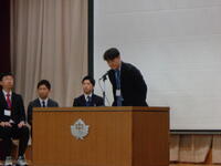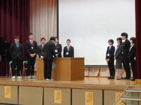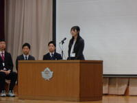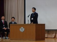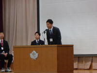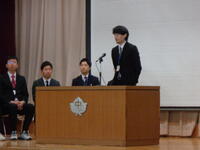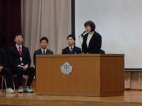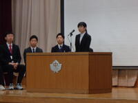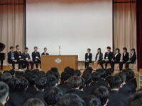 その後の「職員発表」では一転して生徒たちの「元気な反応」がたくさんみられました。思わぬ先生が自分の学年の先生だったり、まさかの先生が他の学年に移ったり、とても盛り上がっていました。会の終わりには新教務主任から全体への連絡があり・・・・・・新2年生の不思議そうな表情が印象的でした。