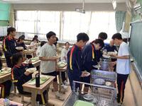 体力テストが終わると、いよいよ待ちに待った給食の時間。おかわりには長蛇の列が並び、食缶は空っぽに。