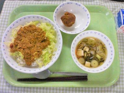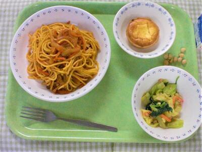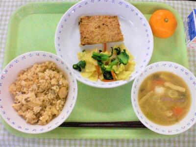さて、今日の給食は和食です。主菜は、鯖のピリ辛焼きです。脂ののった鯖にしょうがやにんにく、醤油などで下味をつけ、パリッと焼き上げ、そこにごま油でよく炒めた手作りのねぎダレをかけて仕上げました。ねぎダレはみそベースのタレで味がしっかりしているので、鯖にはもちろんのこと、白ご飯にも合う味です。鯖には体をつくるたんぱく質の他、記憶力アップのDHAなど栄養が豊富です。ぜひしっかり食べてもらえたらと思います。