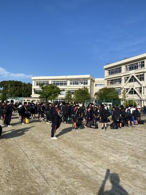柏三中の校舎には、早朝から練習をする応援団の声が響いています。