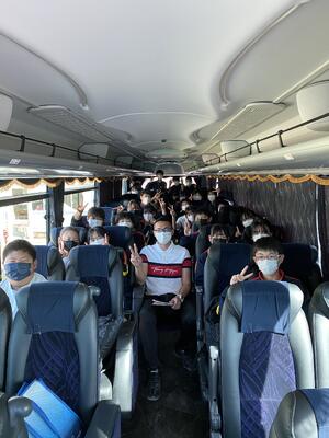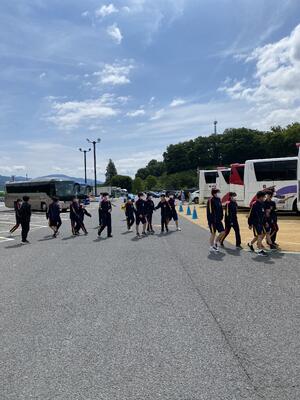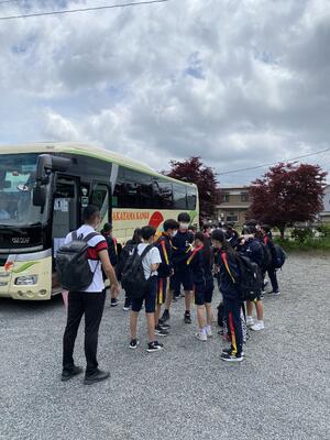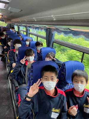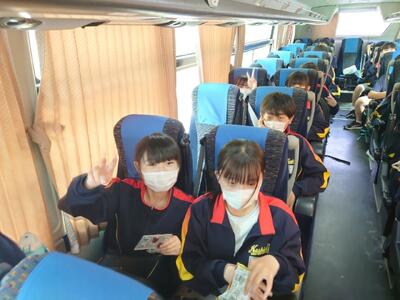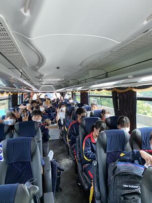 出発式では、実行委員長から「楽しむことはもちろん、一人一人が役割を果たし、スローガンである自己統治を実現しましょう。先生方に頼らず、自分たちでメリハリをつけた行動をしましょう」と力強いメッセージが伝えられました。バスに乗り込み、いよいよ出発です。