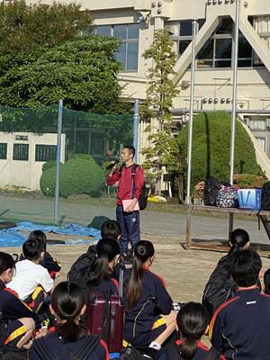 男子バスケットボール部には、昨年度の体育祭で応援団長を務めたOBの